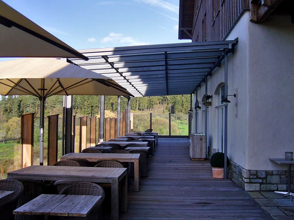 Zusätzlich kann man im Sommer den Terrassenbereich nutzen und beim Speisen in das weite Land schauen.